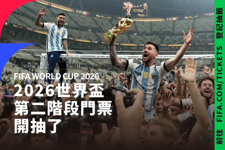 第二階段是搶票的一次絕佳機會,不論您是首次計畫見證世紀足球盛事、還是多年來熱愛的球迷,都千萬不要錯過。趕快登入 FIFA 官網、提交抽籤申請,為 2026世界盃 狂歡搶下一席吧!