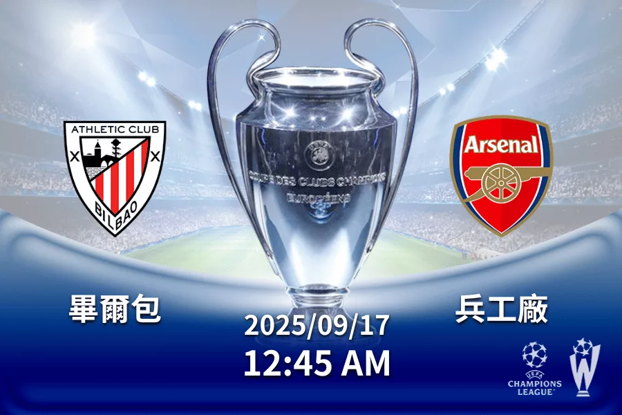 歐冠 | 畢爾巴鄂競技 vs 阿森納 09月17日,這場比賽你會選哪隊呢?