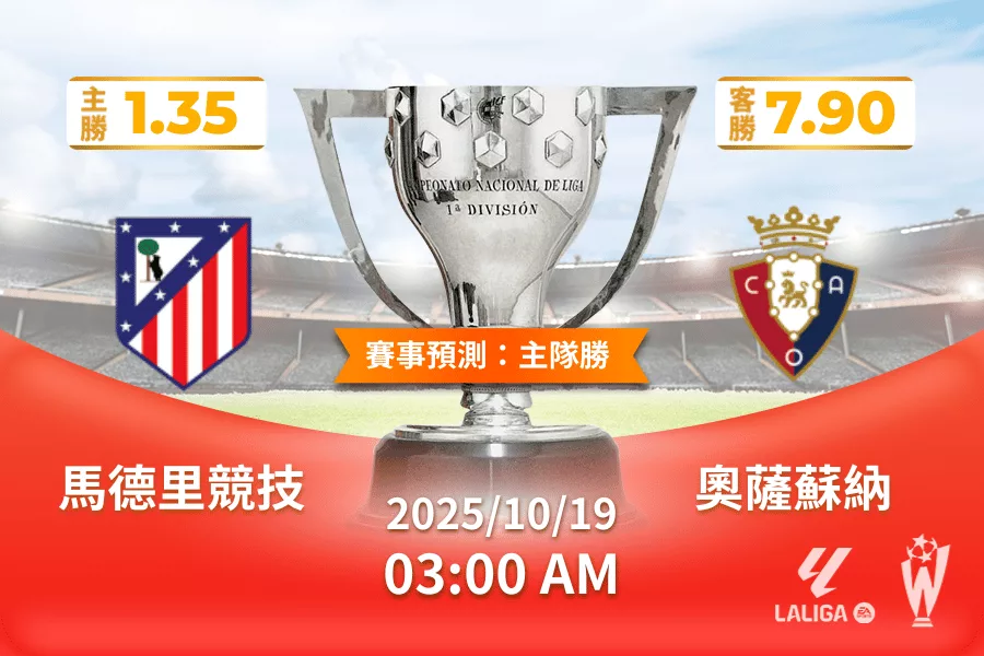 在週日的凌晨,西甲第 9 輪賽事要在馬德里的 Riyadh Air Metropolitano 開打啦!主場的馬德里競技(Atlético Madrid)將要跟來訪的奧薩蘇納(CA Osasuna)展開激烈角逐。雖然兩隊在積分榜上相差不遠,但狀態就像兩極冰川,馬競主場奔發著熱情,而奧薩蘇納卻在客場困惑中迷失方向,急需一場驚喜反彈!