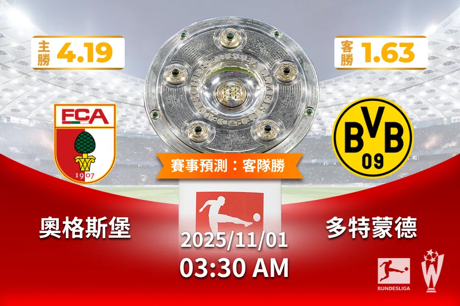德甲 | 奧格斯堡 vs 多特蒙德 2025 年 11 月 01 日