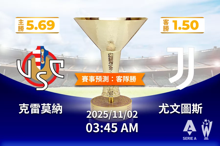 這場比賽可以說是「慢節奏」與「進攻效率」的對拼。克雷莫納打算沿著防守與邊路反擊的路線繼續延續主場的不敗神話,而尤文圖斯則希望這次能打破不勝的陰霾。若能先破門,尤文的勝率將大增;倘若克雷莫納控制了比賽的節奏並把握定位球機會,那麼和局再次上演的可能性就不小。整體走勢和兩隊的得失球數據來看,這場比賽很可能會以 0 比 1 或 1 比 1 收場。投資方向需謹慎控制風險,建議選擇小球和BTTS否的選項。