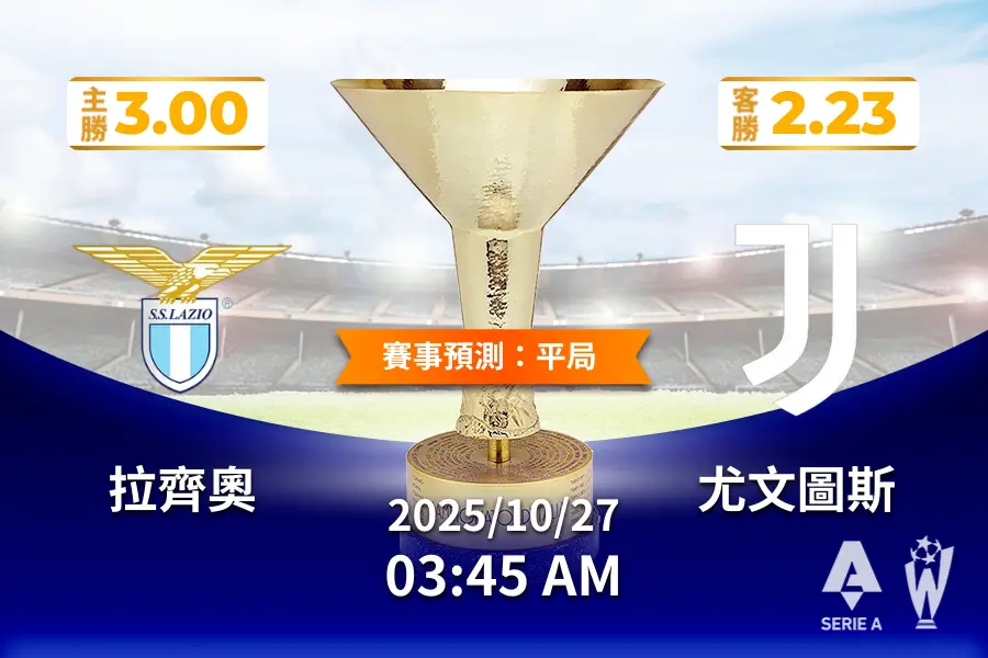 - 比分預測:1-1 平手(拉齊奧主場急需拿分,尤文穩守一心防反,近期平局率爆表)