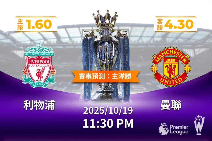 英超 | 利物浦 vs 曼聯,你訂好2025年10月19日的行程了嗎?
