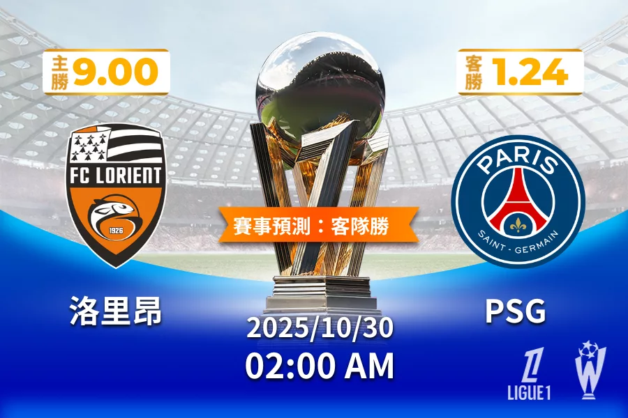 洛里昂 vs 巴黎聖日耳曼 | 核心預測