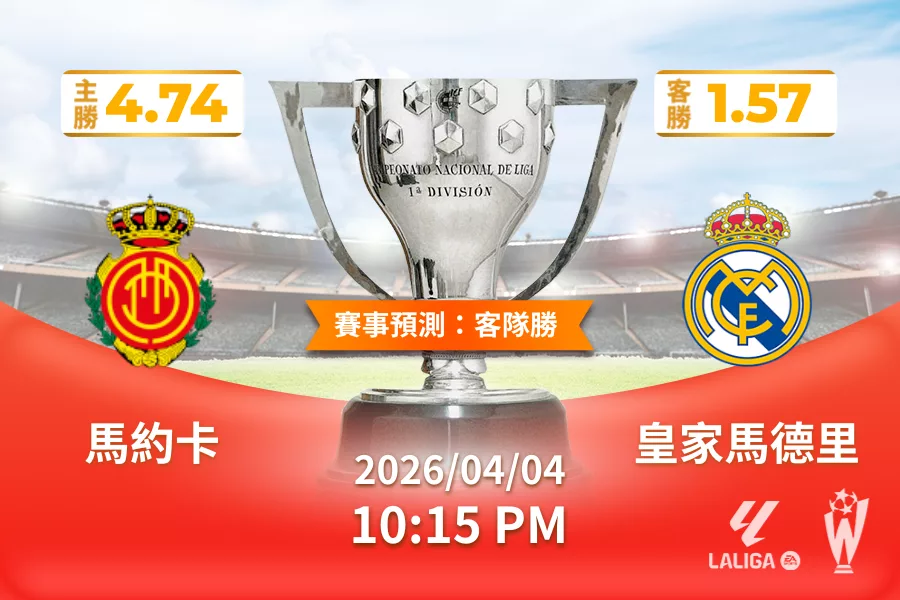 西甲 | 馬約卡 vs 皇家馬德里 2026 年 04 月 04 日