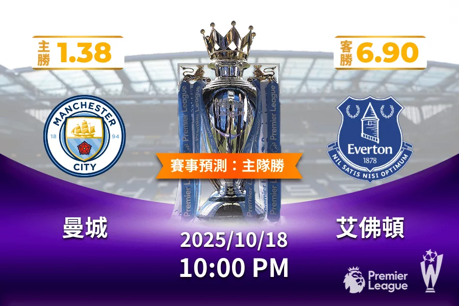 英超 | 曼城 vs 艾佛頓 2025 年 10 月 18 日,誰會獲勝呢?