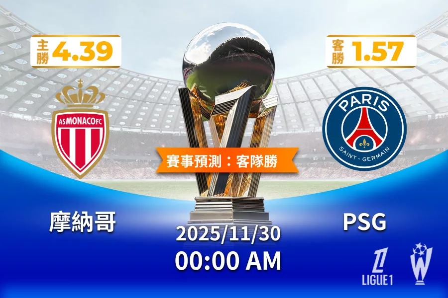 摩納哥 vs 巴黎聖日耳曼 | 核心預測