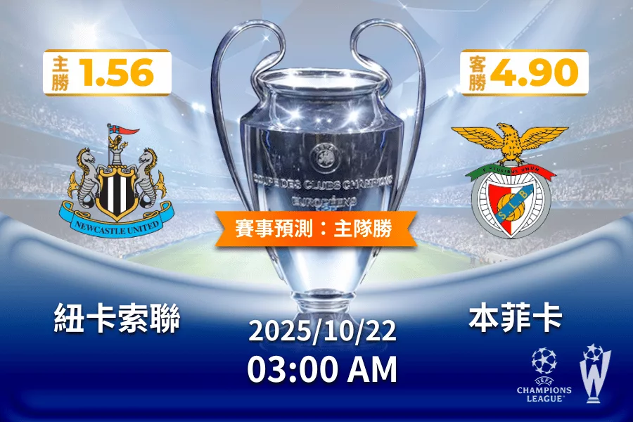 紐卡索聯 vs 本菲卡 | 核心預測: