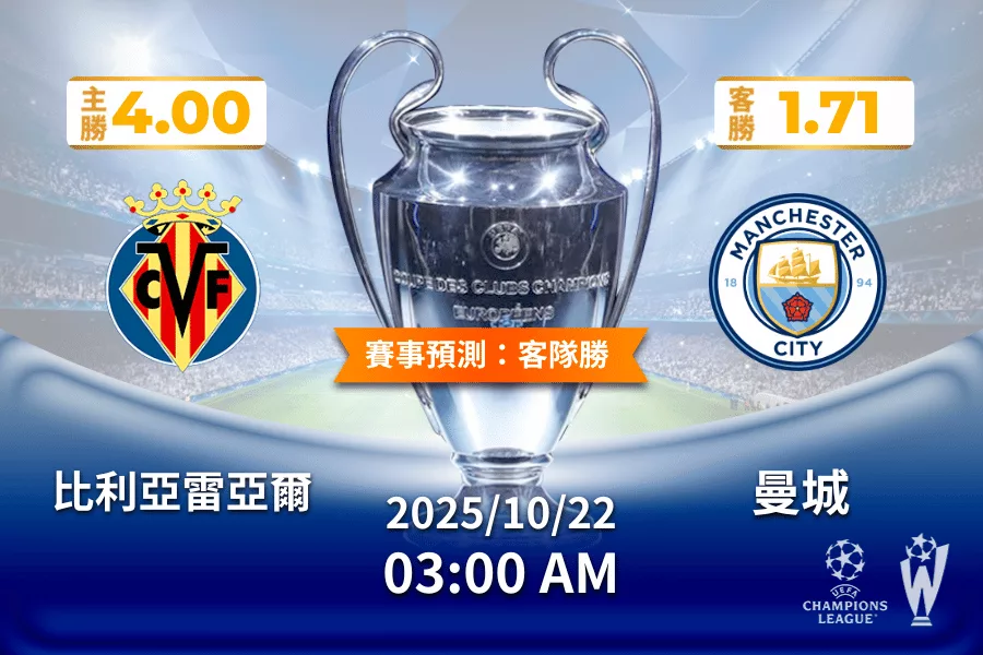 比亞雷阿爾 vs 曼城 | 核心預測: